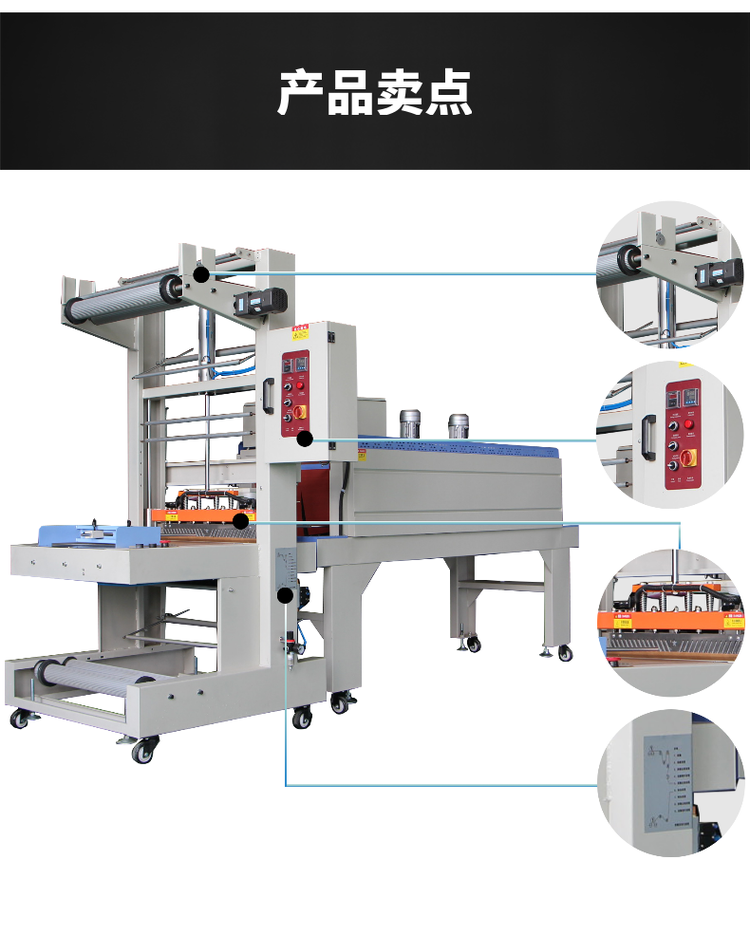 全自動(dòng)熱收縮包裝機(jī)采用自動(dòng)封口和切斷,封口時(shí)將產(chǎn)品手工放到位后只需點(diǎn)動(dòng)啟動(dòng)開關(guān)即可自動(dòng)完成封口過程,也可由時(shí)間控制器控制定時(shí)封口,切斷后產(chǎn)品自動(dòng)輸送出到收縮爐道里。出爐即完成一個(gè)循環(huán)操作,等待進(jìn)入下一個(gè)循環(huán)過程。全自動(dòng)熱收縮包裝機(jī)系列具有設(shè)計(jì)先進(jìn),性能穩(wěn)定可靠,節(jié)電高效果好,結(jié)構(gòu)新穎美觀,操作維修方便等特點(diǎn),可適用于任何收縮薄膜的收縮包裝。 電子無級(jí)變迅自動(dòng)高溫,固能繼電器控制,穩(wěn)定可靠、壽命長、
