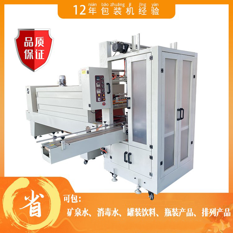 1、飲料全自動包裝機采用新穎優(yōu)化設計, PLC 自動控制,人機界面跟蹤,定位準確。次包進入狀態(tài),杜絕缺瓶、倒瓶、調(diào)節(jié)靈活,安全美觀。 2、全自動包裝機可調(diào)熱風循環(huán)結(jié)構(gòu),適用現(xiàn)有各種熱縮膜(含彩印),薄膜更換快速簡便,故障警示,止鎖齊全,運行可靠。從而為質(zhì)量恒定,平穩(wěn)可靠,長時間連續(xù)生產(chǎn)提供了堅實的保證。 3、收縮機由優(yōu)質(zhì)鋼材及不銹鋼精工制造,結(jié)構(gòu)緊湊合理,